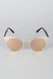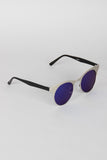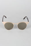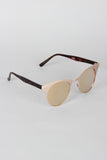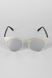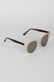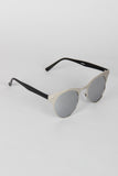 These sunglasses feature a semi-rimless frame, metallic trim and finish, and nose cushion.