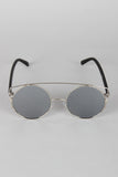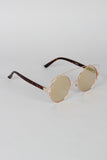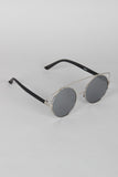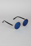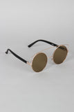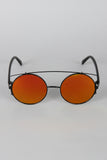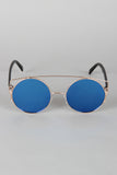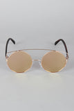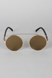 These sunglasses feature the retro round frame, metallic trim, double bridge design, and nose cushions.