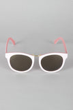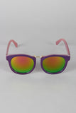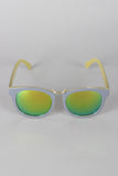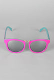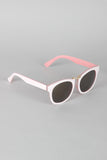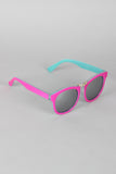 These sunglasses feature vibrant two tone color, plastric framing, and finished with a metallic bridge.