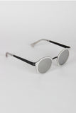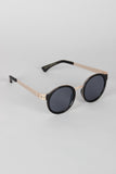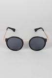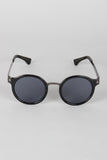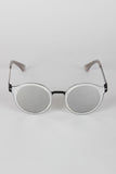 These sunglasses feature a round set of lenses, plastic and metal framing, and single nose bridge.