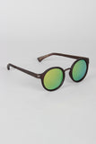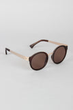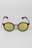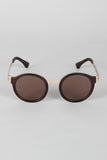 These sunglasses feature a matte plastic and metal frame, round lenses, and single nose bridge.