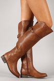 These fashionable boots feature a rounded toe, buckle strap detail on shaft, stitching accents, and block heel. Finished with cushioned insole, soft interior lining, and partial side zipper closure for easy on/off.
