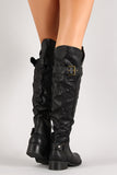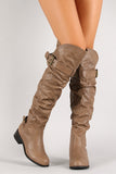 Belted Strap Screw Slouchy Knee High Riding Boot