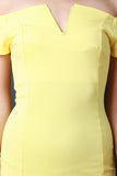 This simply chic dress features an off the shoulder construction complete with short sleeves, v-bone neckline, strategically place vertical seams, and a vent slit at back hemline. Accessories sold separately. Made in U.S.A. 33% Nylon, 62% Viscose, 5% Spandex.