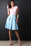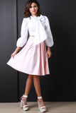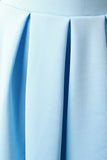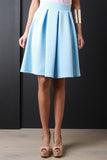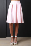 Midi skirt featuring smooth stretch knit, pleated flowy design, wide elastic waistband, and stitching detail. Accessories sold separately. Made in U.S.A. 92% Polyester, 8% Spandex.