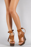 Bamboo Suede Leg Wrap Perforated Platform Wedge
