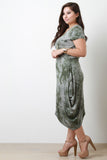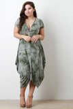 Marble Tie Dye Surplice Short Sleeves Asymmetrical Midi Dress