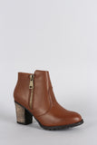 Bamboo Round Toe Zip Up Heeled Ankle Boots