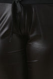 These plus size vegan leather pants are jogger bodice, featuring elasticized ankle cuffs and waist band. Finished with side pockets. Accessories sold separately. 95% Polyester. 5% Spandex.