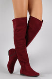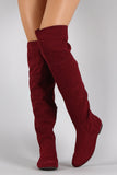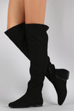Bamboo Faux Suede Zipper Collar Knee High Boot