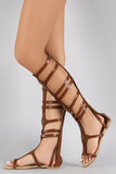 • Perforated Studs Strappy Gladiator Knee High Flat Sandals