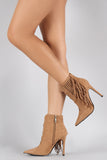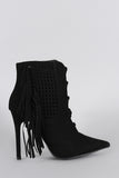 Suede Perforated Fringe Pointy Toe Stiletto Booties
