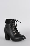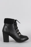 Bamboo Sweater Cuff Combat Lace Up Heeled Booties