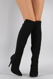 • Anne Michelle Suede Quilted Lycra Pointy Toe Stiletto Boots