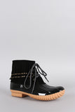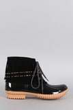 Studded Fringe Cuff Lace Up Duck Ankle Boots