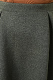 A plus size midi skirt featuring marl neoprene, inverted pleats, and elasticized waistband. Accessory sold separately. Made in U.S.A. 95% Polyester, 5% Spandex.