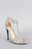 Anne Michelle Glitter Rhinestone T-Strap Stiletto Heel