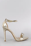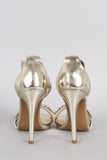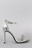 Anne Michelle Metallic Jeweled Open Toe Ankle Strap Stiletto Heel