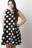 Polka Dot Microbeads Necklace Mock Neck Sleeveless Shift Dress