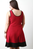 This plus size skater dress features a semi-sheer lace yoke, round neckline, sleeveless construction, cinched waist seam, skater flare skirt, and contrasting trim hemline. Accessories sold separately. Made in U.S.A. 96% Polyester, 4% Spandex.