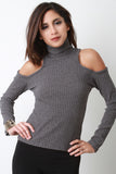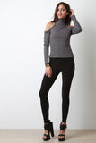 Mettallic Shimmer Open Shoulder Turtleneck Top