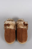 These adorable clogs feature a suede upper with bow accents, cozy faux fur trims, and lining. Easy slip on construction.