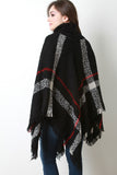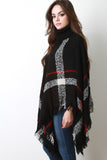 This knitted poncho top features a large turtle neckline, poncho cut fit, asymmetrical hemline, and plaid design. Accessory sold separately. 60% Cotton, 40% Polyester.