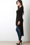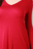 This jersey knit top features a v-neckline, long sleeves, shift cut fit, high low hemline, and a rear vent slit. Accessories sold separately. Made in U.S.A. 95% Rayon, 5% Spandex.