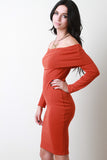 Off-The-Shoulder Long Sleeves Bodycon Dress