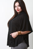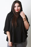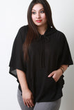 This plus size poncho features a soft knit fabrication, attached hoodie with drawstring closure, front kangaroo pocket, short sleeves design, and finished with rounded hemline. Accessories sold separately. Made in U.S.A. 96% Rayon, 4% Spandex.