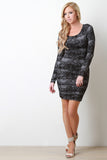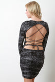 A ruched bodycon laces . Accessories sold separately. Made in U.S.A. 95% Viscose, 5% Spandex.