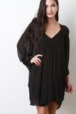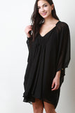 A semi-sheer chiffon long dolman sleeves with double button cuffs. Partially lined. Accessories sold separately. 100% Polyester.