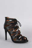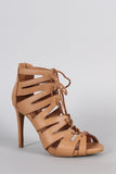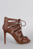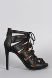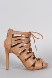 • Strappy Lace Up Peep Toe Stiletto Heel