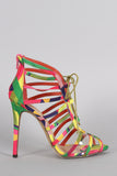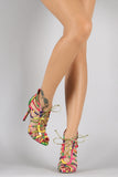 Liliana Multicolor Geometric Print Strappy Lucite Lace Up Heel