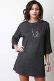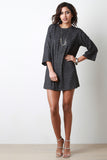 This shift dress features soft knit, round neckline, long wide sleeves, and mini length. Accessories sold separately. Made in U.S.A. 80% Rayon, 15% Polyester, 5% Lycra.