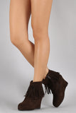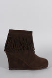 Suede Layered Fringe Wedge Booties