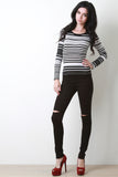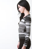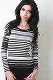 This long sleeve top features soft knit, horizontal stripe design, and round neckline. Accessories sold separately. 97% Rayon, 3% Spandex. Cont: 95% Rayon, 5% Spandex.