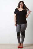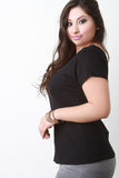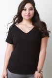 Ribbed Knit V-Neck Short Sleeves Top