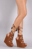 This lovely wedge features a peep toe silhouette, strappy construction with lace up closure, and wrapped platform wedge heel. Finished with lightly padded insole for comfort.