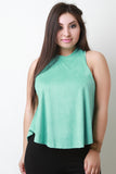 Faux Suede Sleeveless Mock Neck Top