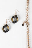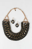 This weighty multi-strand necklace features an ombre-tone brushed metallic look on three thick curb chains. Finished with an adjustable lobster hook closure and matching earrings.