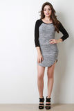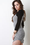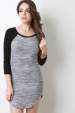 This casual dress features two-tone design, marled knit, round neckline, long raglan sleeves, and curved hem. Accessories sold separately. Made in U.S.A. 48% Rayon, 48% Polyester, 4% Spandex.