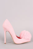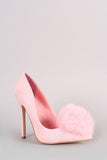 Faux Fur Pom Pom Suede Pointy Toe Stiletto Pump