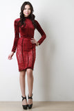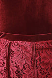 • Velvet Mock Neck Bodysuit With Sheer Lace Midi Skirt
