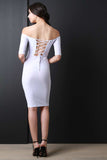 Lace Up Open Back Off Shoulder Midi Dress