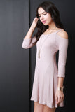 Thermal Cold Shoulder Quarter Sleeve Trapeze Dress