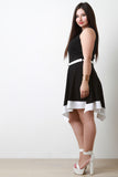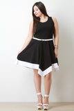 Contrast Belted Sleeveless Handkerchief Hem Fit And Flare Dress