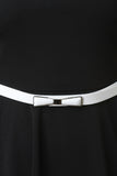 This gorgeous plus size fit & flare dress features a round neckline, sleeveless design, and contrasting handkerchief hem trim. Dress come with removable tuxedo bow accent vegan leather belt. Other accessories sold separately. Made in U.S.A. 96% Polyester, 4% Spandex.