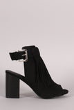 Wild Diva Lounge Suede Buckled Peep Toe Mule Heel