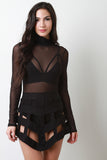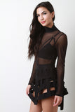 Mock Neck Mesh Bodysuit And Cage Skirt